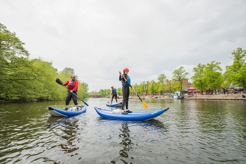 The River Dee at Chester is the perfect place to experience the joy of river kayaking. You can enjoy nature as you paddle past Chester Meadows, the atmosphere of the river-front promenade, and soak in the history of sites such as the Roman city walls, the Old Dee Bridge, and the Chester Weir on your Chester Kayaking Tour.