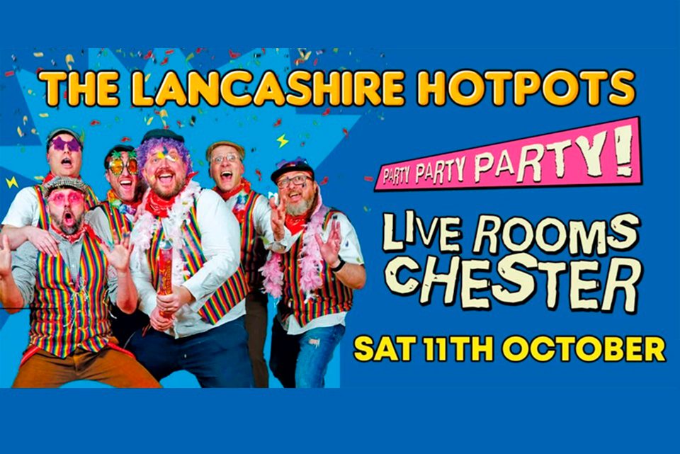 The ultimate party starters The Lancashire Hotpots are back in Chester this weekend to give you the biggest night out of the year. For more years than they care to remember, the Hotpots have built up a solid reputation as THE go to band for a good night out. Join Bernard and the boys as they play all your Hotpot favourites: Egg Sausage Chips & Beans, Has The Bin Man Bin Mon?, Chippy Tea as well as loads of silly songs you won’t be able to get out of your head. Grab your flat cap and get ready to party, party party!