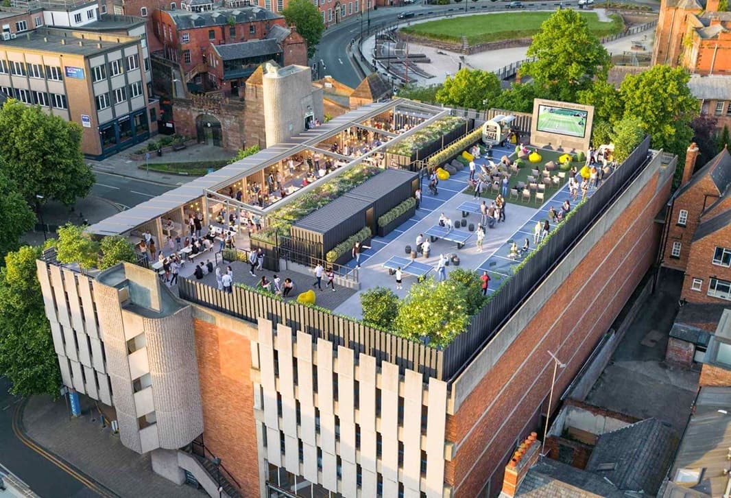 Rooftop Social Club features four permanent kitchens and a full-service bar, housed in custom-built units. The kitchens will be operated by city favourites Death By Tacos and Chester Zoo, alongside 2 newcomers: iKO Projects own Enzo’s Pizza and The Fat Greek.