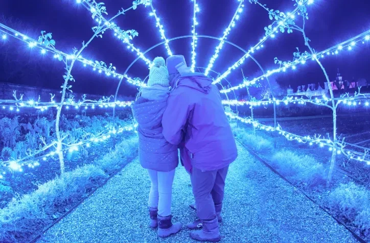 Tatton Park becomes a sparkling festive destination with a magical blend of tradition and immersive experiences across its historic mansion, gardens, and estate. The highlight is Yuletide – A Glittering Winter Adventure, where visitors can follow the illuminated Glittering Trail through the gardens, meeting characters from winter folklore and enjoying live music, storytelling, and fire juggling. Gather round roaring fires to roast marshmallows, warm up with hot chocolate, and be enchanted by magical performances that bring the season's tales to life.